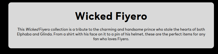 Simply, the NBC Wicked merchandise webpage works as an adaptation because it shows that authorship today extends beyond the writer and into the industrial system that circulates the story within the media. The webpage then performs its own authorial labor by taking narrative elements from the films and transforming them into new and consumable objects. It isolates specific narrative fragments and repackages them into individual marketable units and then circulates these as products that reinterpret the meaning of the characters. This reinforces the idea that the site’s adaptive storytelling is not accidental but is a built-in feature of how modern adaptations operate within a cross-media marketplace. Taking all these ideas into account, we can better understand that the sites carefully curated images, slogans, and character aesthetics reveal that it is not merely referencing Wicked and Wicked: For Good but actively adapting it.