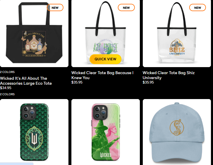 NBC. Wicked The Movie Merchandise. 2025. https://www.nbcstore.com/collections/wicked?gad_source=1&gad_campaignid=21890117420&gbraid=0AAAAADJMNJw9sj3gGLrh-d7ujMxizR7Fw&gclid=CjwKCAiA_dDIBhB6EiwAvzc1cCtzcxHWsSzdilKdKJFjAXWY4ot82csd2XSrwsKGBtsr5uLi5ph_kxoC7QQQAvD_BwE. November 2025.